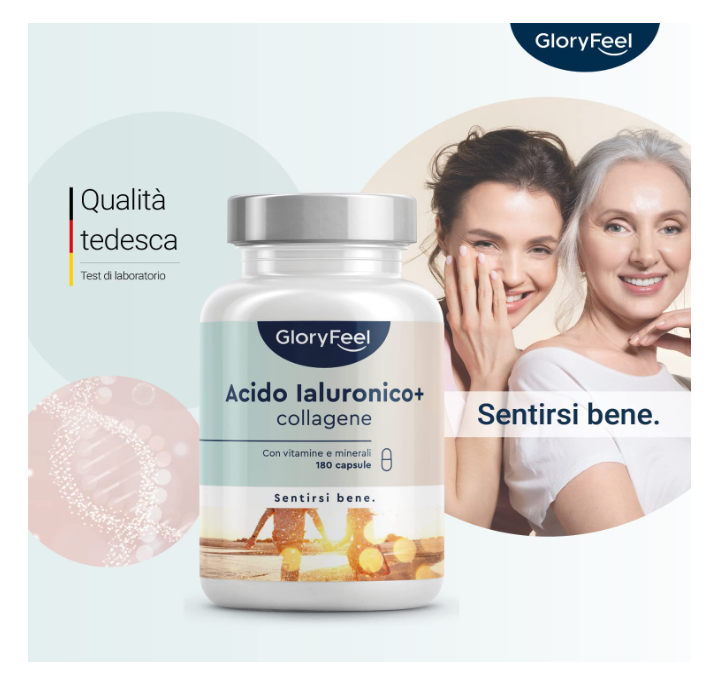 Collagene Acido Ialuronico Integratore 180 Capsule, Acido Ialuronico e Collagene + Vitamina C, Biotina, Zinco e Selenio, 1000mg Collagene Idrolizzato +200mg Acido Ialuronico con Bambù & Silicio