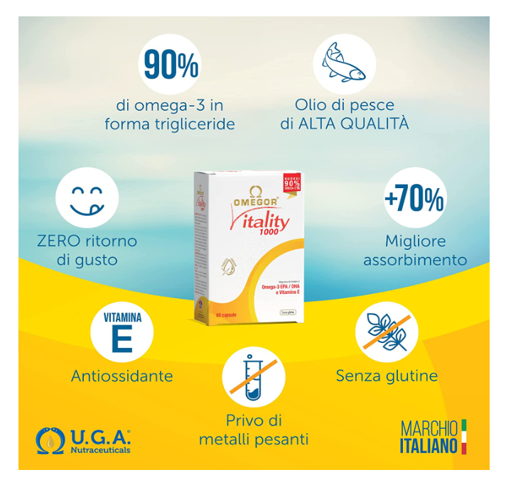 Olio di pesce - Omega 3 1000mg | L’unico Omega 3 IFOS certificato 5 stelle dal 2006 | Integratore Omega 3 con 800mg EPA e DHA per capsula | 90% Omega3 rTG Fish Oil | 30 capsule 1000mg
