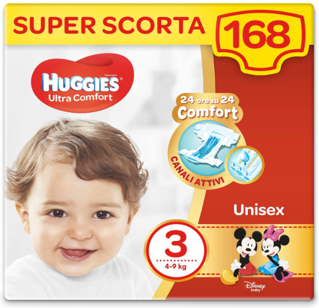 Huggies Pannolini Ultra Comfort, Taglia 3 (4-9 Kg), Confezione da 168 Pannolini